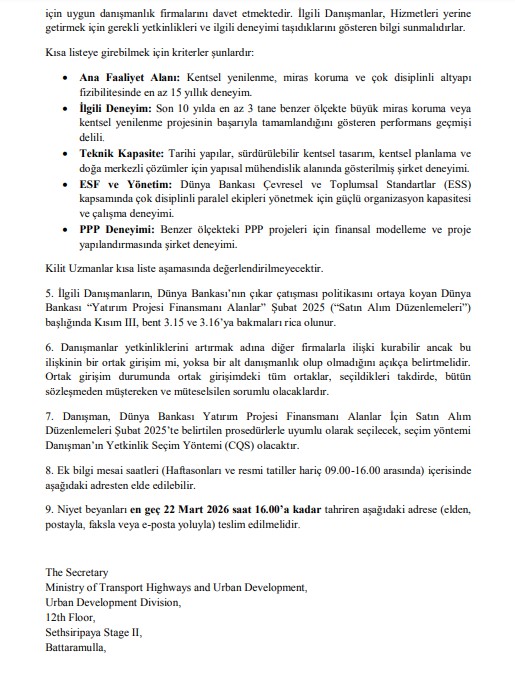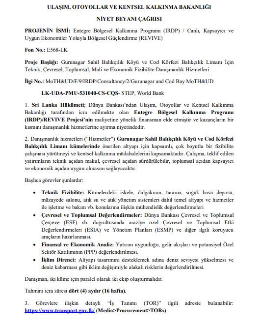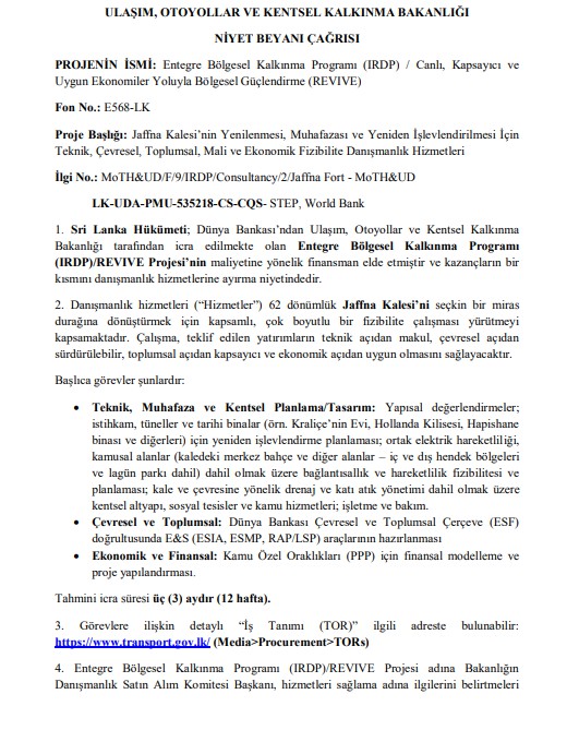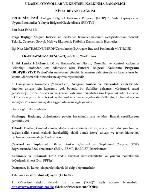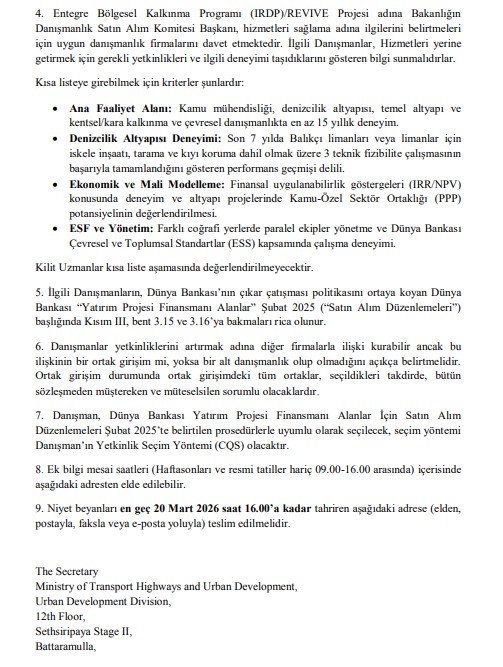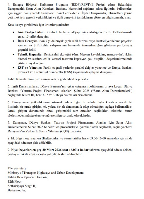 Niyet Beyanı Çağrısı (REOI) – Canlı, Kapsayıcı ve Sürdürülebilir Ekonomi Yoluyla Bölgesel Güçlendirme (REVIVE) IRDP Projesi için Danışmanlık Firmalarının Seçilmesi